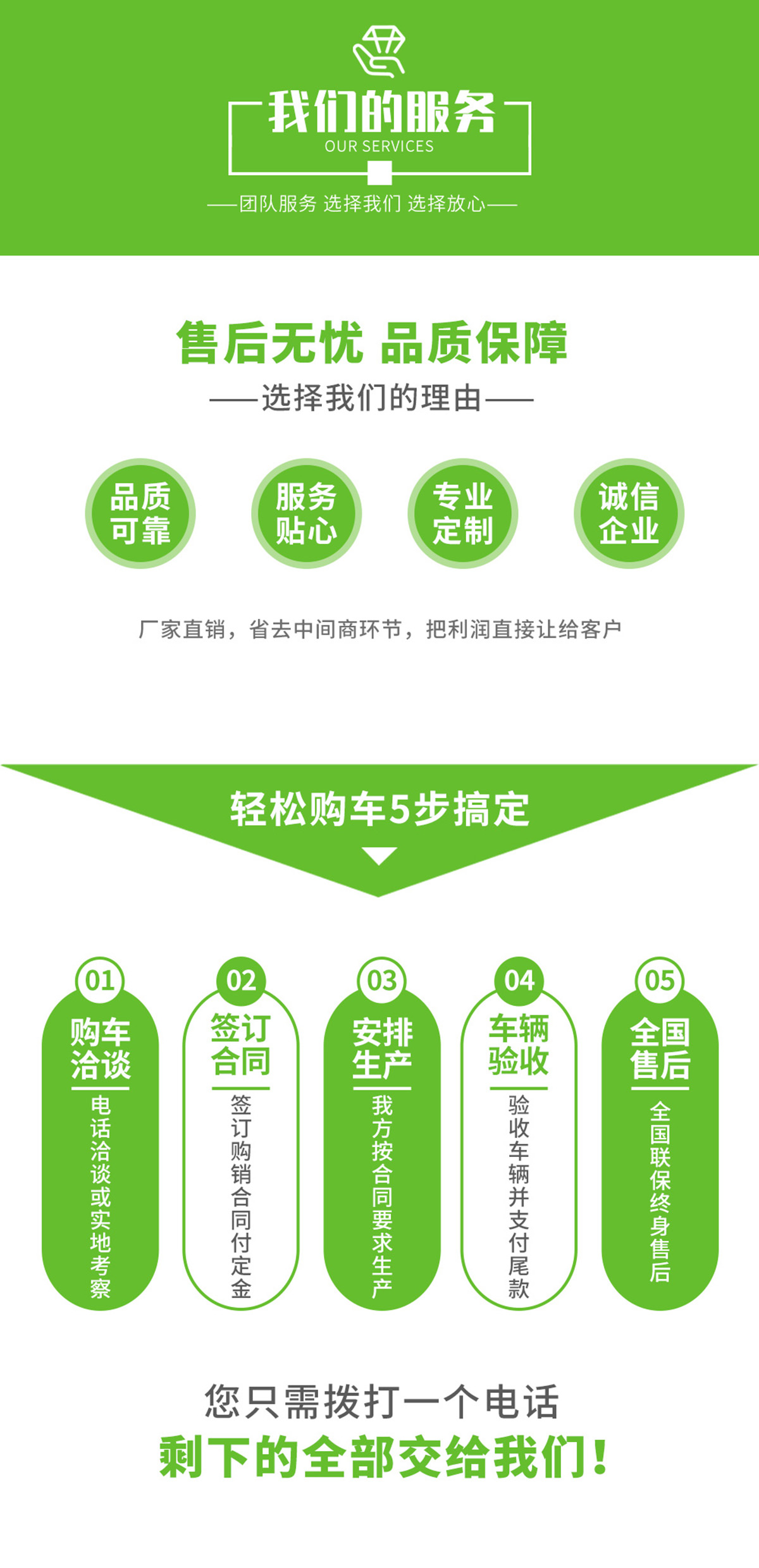 ·創優質服務企業; 造用戶滿意產品; 樹國內知名品牌!公司堅持以“質量求生存、信譽求發展、科技創新路、服務創品牌”的經營理念,以“誠信、務實、創新、進取”為企業宗旨,不斷提升自身產品質量,開發適應市場需求物美價廉的多功能專用汽車! 我們將謁誠為您提供更好、更快、更優質的服務!