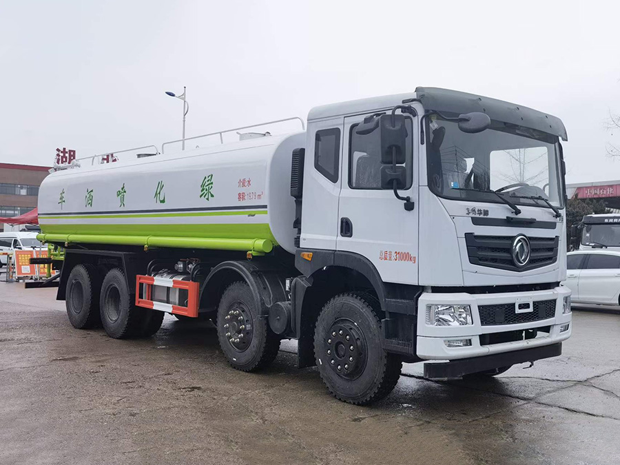 上裝配置簡要介紹:罐體采用標準Q235碳鋼制作,罐體自動焊,裝水25噸,配大功率專用灑水車,可自吸自排,前沖后灑,側噴,高位花灑,主管道加粗,大通徑球閥,直通球閥式消防接口,帶后工作平臺,沖孔平臺,帶高炮。(可選裝大平臺,可裝30米霧炮降塵)。環保,免征齊全。